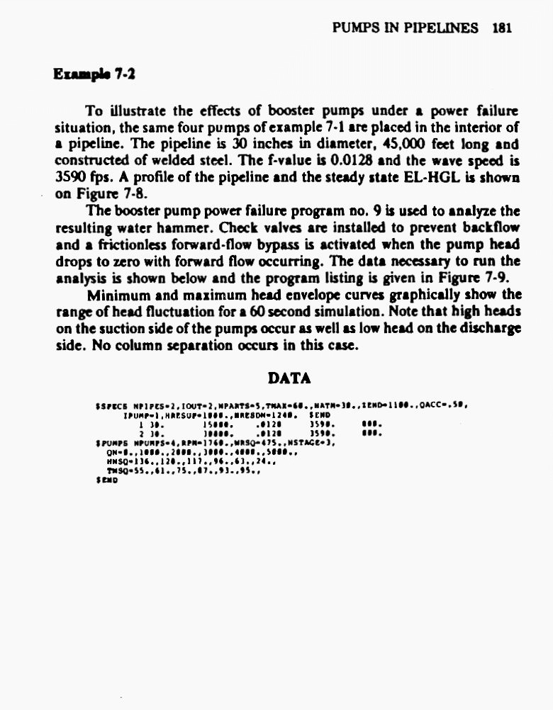 Modern Analysis and Control of Unsteady Flow in Pipelines, 1979, Ann Arbor Science, Watters, Gary Z., PE, Page 181, Ex. 7-2
