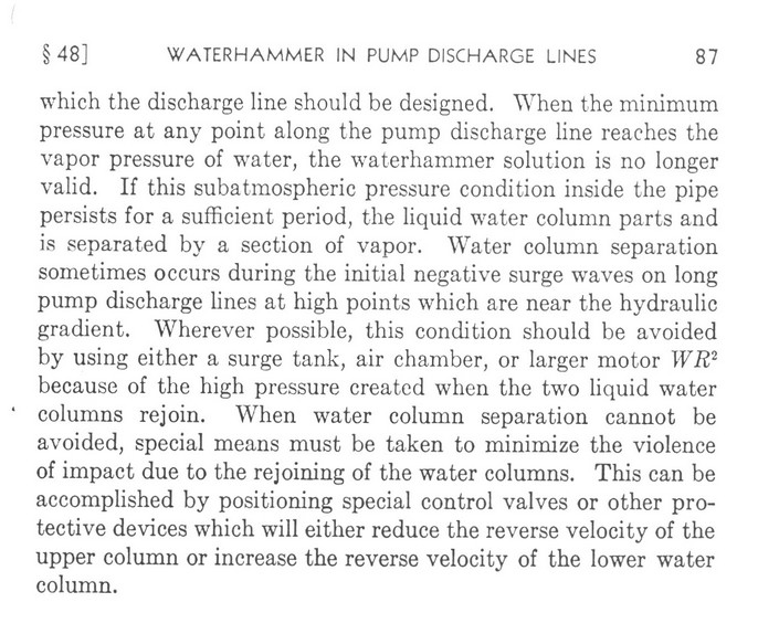 Waterhammer Analysis, John Parmakian, Dover Publishing, 1963, Page 75 - 86.